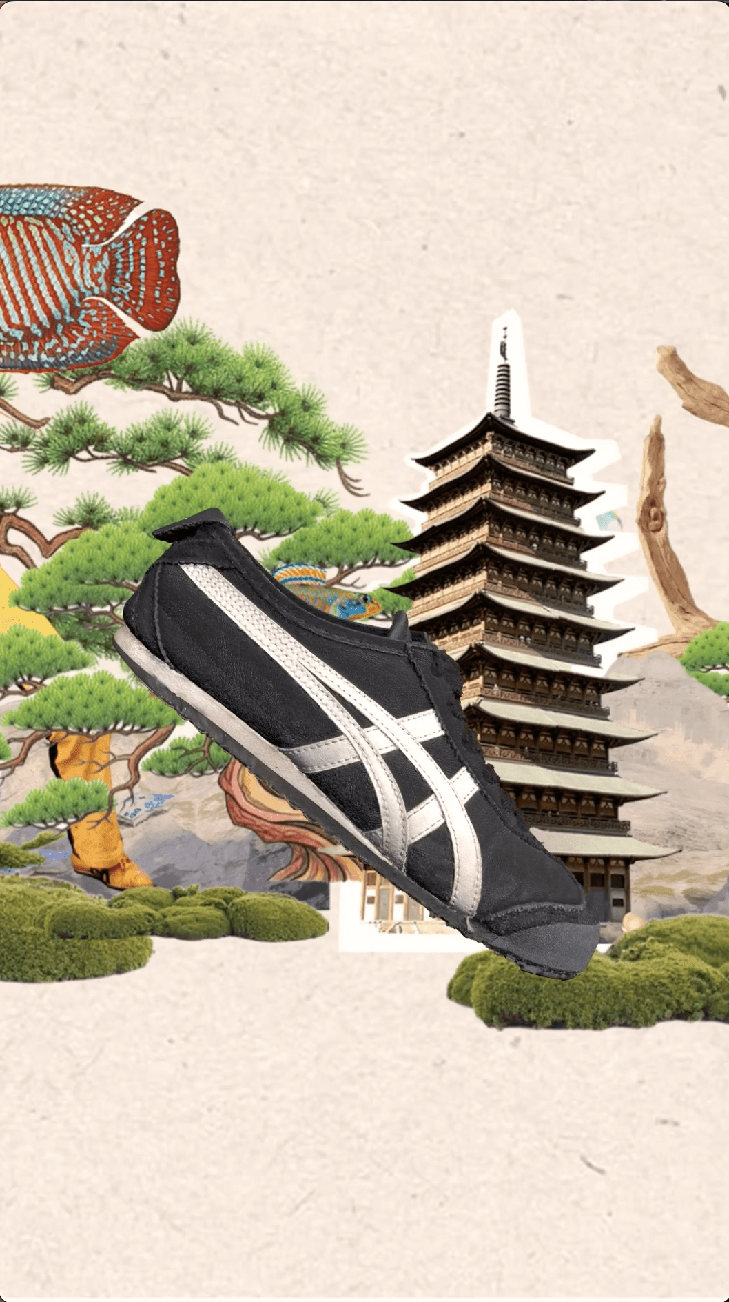 This campaign centers on the Onitsuka Tiger Mexico 66 Black, created for its 60th anniversary in 2026 and designed to spark nostalgia while honoring Japanese heritage. The concept blends traditional paper-animation aesthetics with modern 3D modeling to mirror Japan’s balance of tradition and innovation. The ad is a 15-second visual story set in a fantastical paper world that unfolds like hand scroll, with the tagline Heritage in Motion. The visuals lean on iconic cultural symbols, tigers, torii gates, cherry blossoms, classical architecture, forests, and Japanese gardens, woven together in a magical, airy collage style.